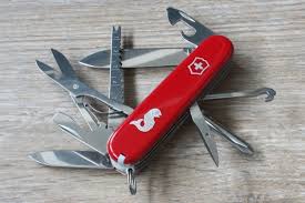 - С лезвием; С крестовой отверткой; С консервным ножом; С малой отверткой; С открывалкой для бутылок; С отверткой; С инструментом для снятия изоляции; С шилом; С кольцом для ключей; С пинцетом; С зубочисткой; С ножницами; С крючком; С линейкой; С инструментом для чистки рыбы; С инструментом для извлечения рыболовного крючка